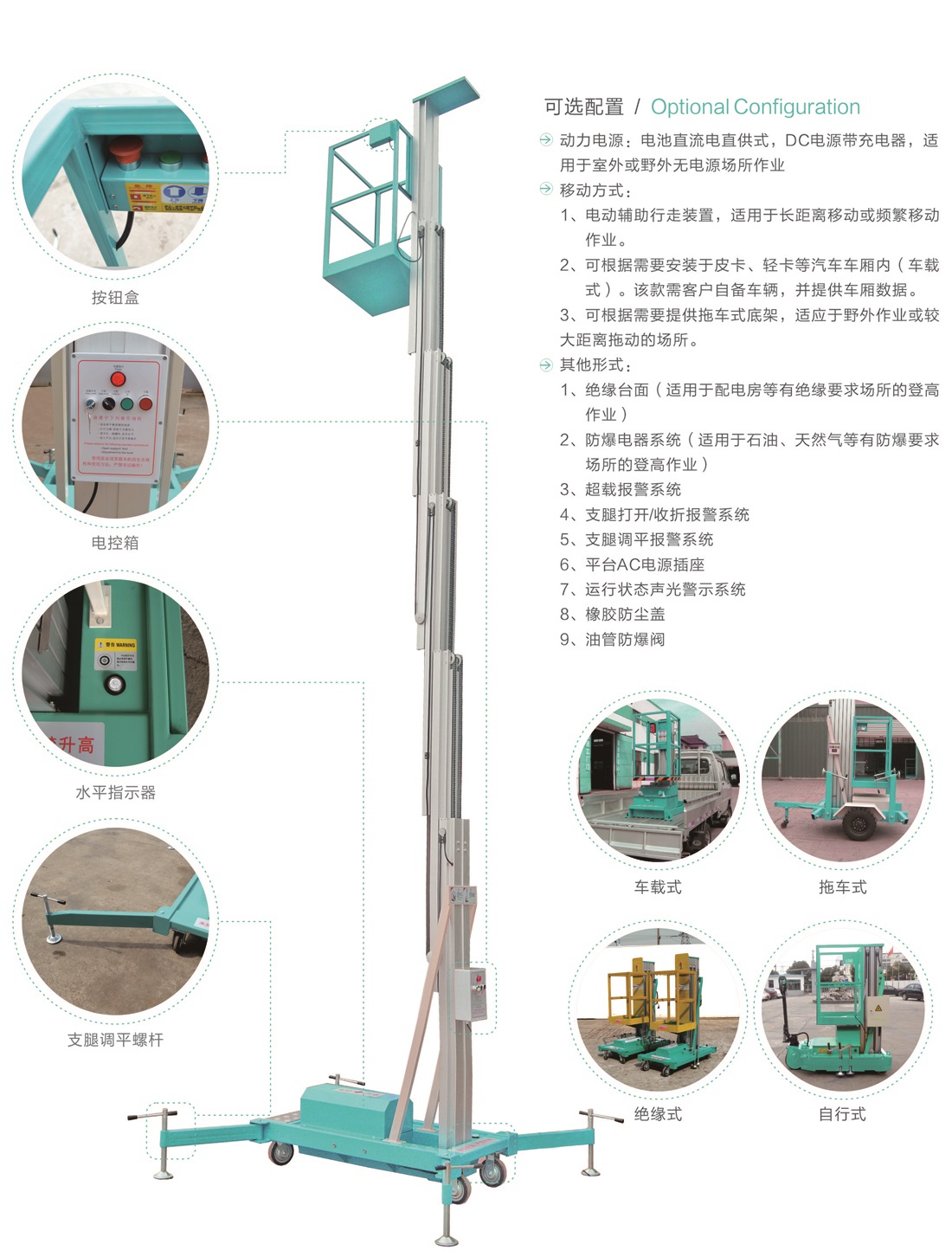 平臺最大高度規(guī)格:可選4m、 6m、8m、9m、10m