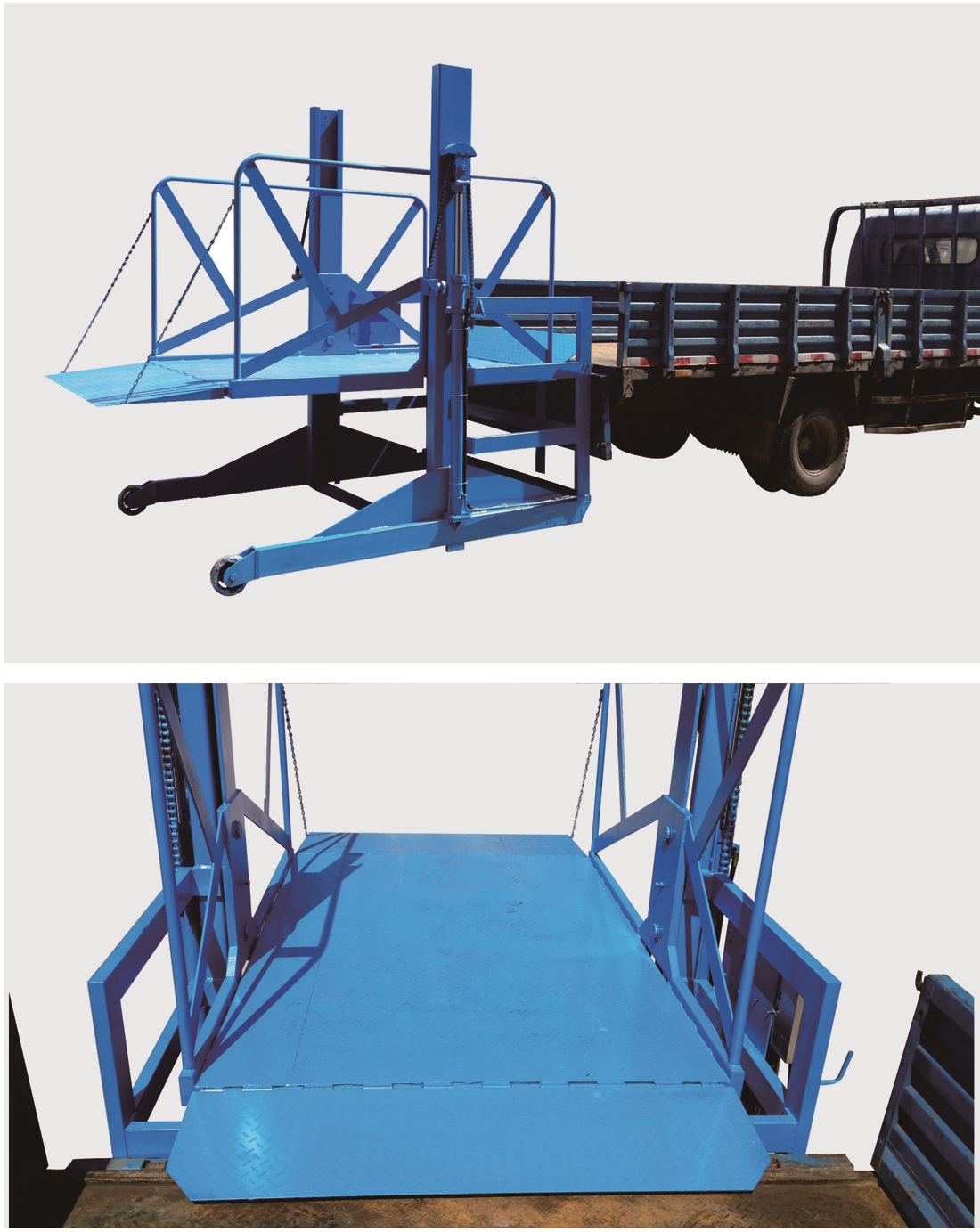 主要用于倉庫、車庫、工作車間等與貨車尾部有高度差之間貨物運送;物料上線、下線;工件裝配時調(diào)節(jié)工件高度;高處給料機(jī)送料、上料、下料舉升設(shè)備;